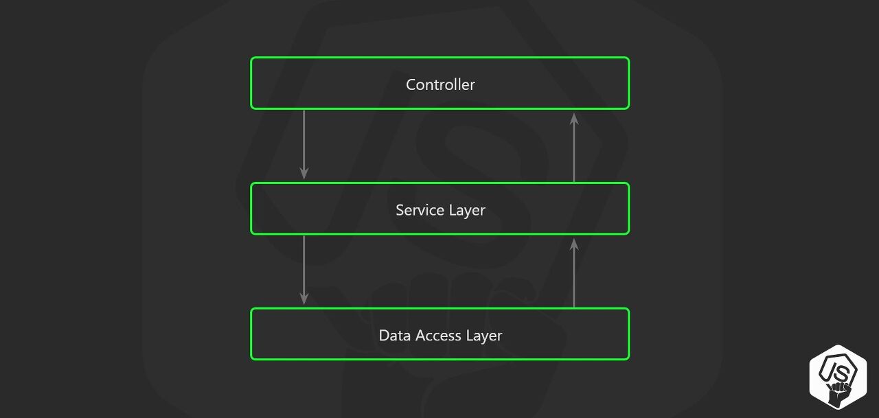아마 express.js controllers에 바로 애플리케이션의 비즈니스 로직을 구현하고 싶을 수 있습니다. 하지만 이렇게 코드를 작성하면 스파게티 코드가 되기 마련인데요, 유닛 테스트를 작성하다 보면 수많은 express.js의 req와 res 오브젝트를 다루게 될 것이기 때문입니다.