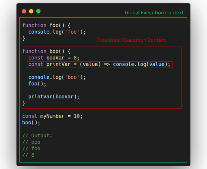 실행 컨텍스트란 자바스크립트 코드가 실행되고 연산되는 범위를 나타내는 추상적인 개념으로 코드가 실행된다면 실행 컨텍스트 내부에서 작동하고 있는 것이라고 보면 됩니다. 실행 컨텍스트는 크게 3가지로 분류되는 데, 이 게시글에서는 2가지만 간단하게 알아보겠습니다. (자세한 내용은 이곳)