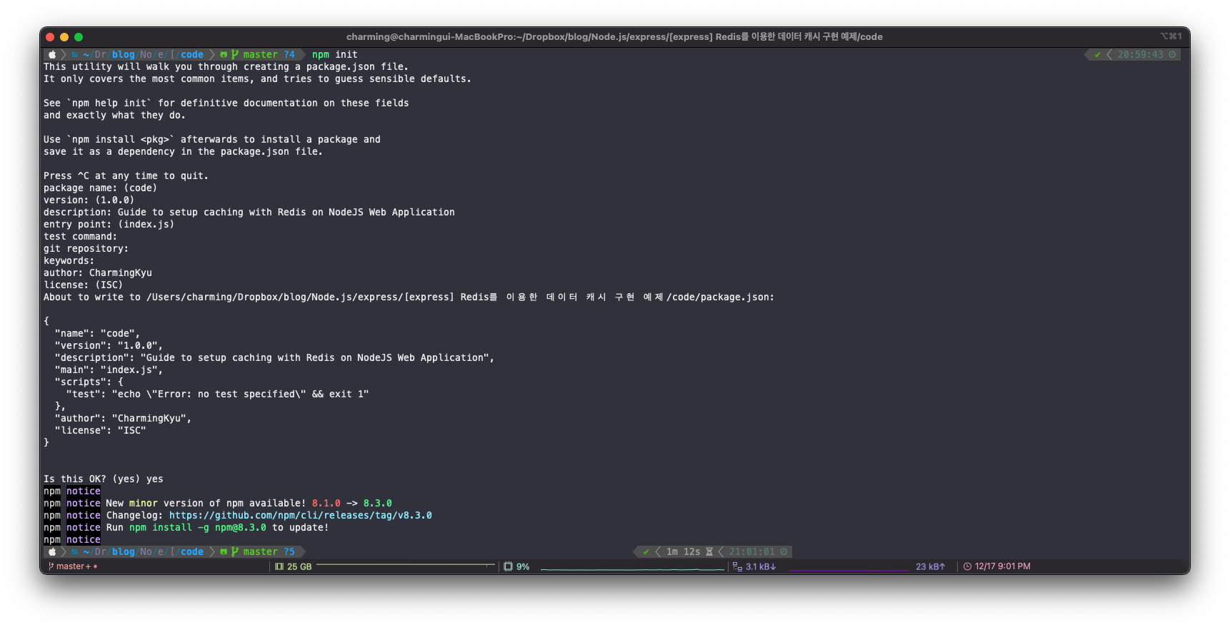 별도의 폴더에서 npm init 을 실행 하여 프로젝트를 설정합니다.
